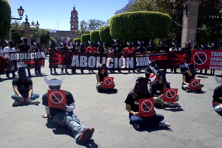 Por la abolición de las corridas de toros, se manifiesta el movimiento auti taurino en la Plaza de Armas de la capital michoacana.