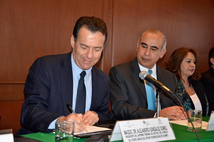 Con el objetivo de enriquecer la información estadÃstica con que cuenta actualmente la judicatura michoacana y seguir fortaleciendo la transparencia en la administración de justicia, se firmó convenio de colaboración entre el Poder Judicial de Michoacán (PJM) y el Tribunal Superior de Justicia del Distrito Federal (TSJDF).