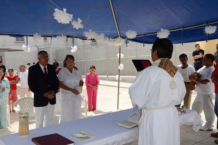 Con el objetivo de fomentar el valor de la relación de pareja y con ello contribuir al fortalecimiento del vínculo familiar, el Centro de Reinserción Social del municipio de Tacámbaro se engalanó con su segunda unión nupcial por la Iglesia en la presente administración.