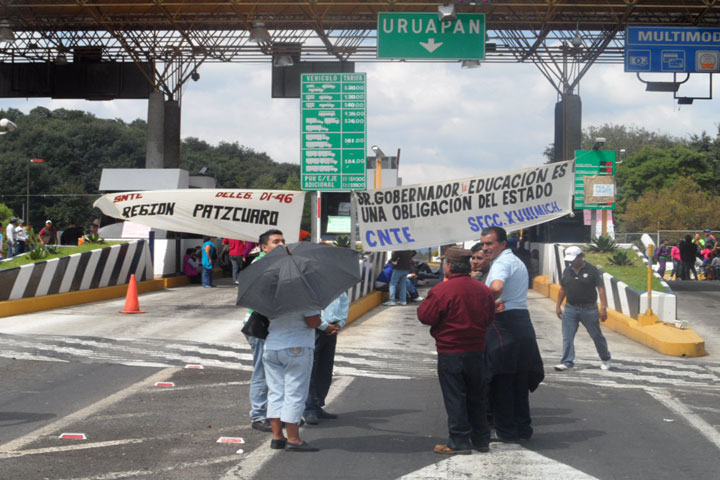 Las casetas de la autopistas siglo XXI y del Occidente del estado, fueron tomadas por integrantes de la sección XVIII de la Coordinadora Nacional de Trabajadores de la Educación (CNTE), tal y como lo había advertido, luego de que finalmente pospusieron para el día de mañana la marcha que había anunciado para hoy.