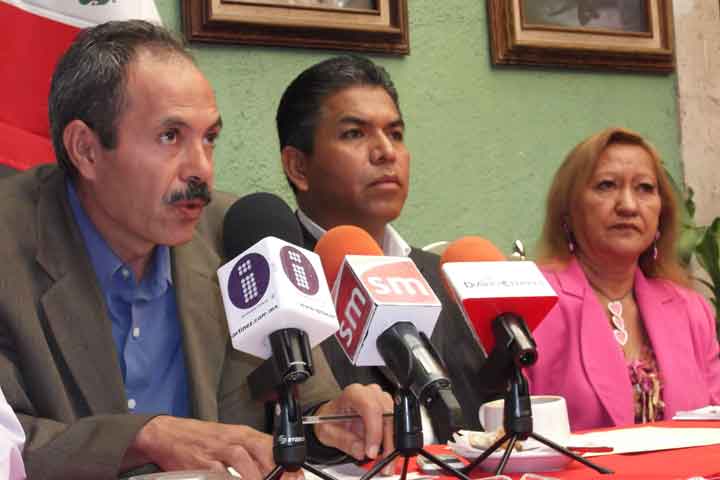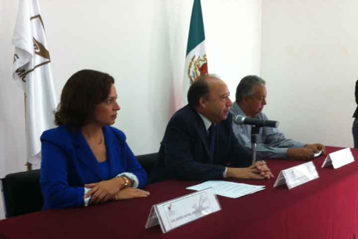 En rueda de prensa el Ombudsman michoacano, José María Cázares Solórzano, acompañado de la secretaria Ejecutiva, María Isabel Pinto Anguiano y el coordinador Administrativo, Sergio Garcí... Ver más...