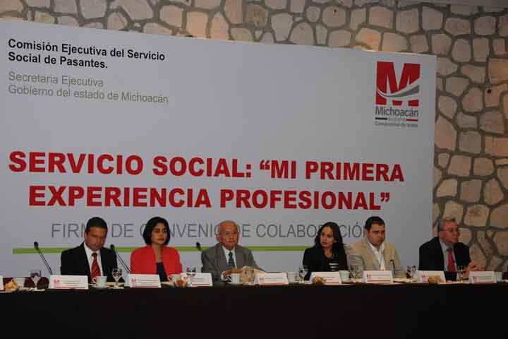 La Comisión Ejecutiva del Servicio Social de Pasantes, 88 dependencias que integran el Poder Ejecutivo de Michoacán, así como Universidades y Asociaciones Civiles firmaron el convenio "Mi Primera Experiencia Laboral" para ofrecer a los jóvenes michoacanos una oportunidad que les permita tener práctica laboral real.