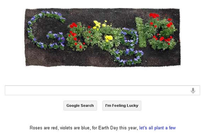 NOTICIAS 22/04/2012Google planta un jardÃn en su "doodle" por el DÃa de la Madre TierraPara celebrar el DÃa Internacional de la Madre Tierra, Google transformó su logotipo en un jardÃn.