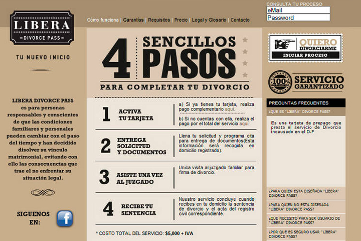 NOTICIAS 23/04/2012Sale a la venta una tarjeta para divorciarse en 4 sencillos pasos Es prepaga, cuesta 15 dólares y puede conseguirse en bancos y tiendas de la Ciudad de México. Disolver un matrimonio ahora es más fácil que nunca. Sólo hay que seguir las instrucciones.