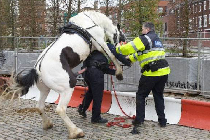 NOTICIAS 07/04/2012Caballo excitado ataca a policíaUn caballo que estaba excitado, se quiso sobrepasar con un policía que se encontraba a su lado. El hecho ocurrió en Irlanda mientras se celebraba la "Smithfield Market", una representación de una antigua costumbre que se festejaba en Dublín, donde la gente de otros pueblos se acervada a la ciudad para hacer sus compras, tratos o trueques.