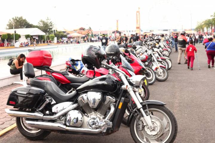 Con sus imponentes motocicletas, se instalaron alrededor del área de las fuentes, donde ofrecen un espectáculo para niños y adultos.