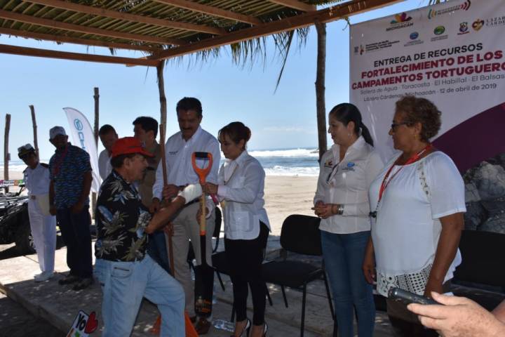 NOTICIAS 14/04/2019SEMACCDET entrega apoyos a tortuguerosEl secretario de Medio Ambiente, Cambio Climático y Desarrollo Territorial (SEMACCEDET), quien se hizo acompañar de la presidenta municipal, María Itzé Camacho Zapiain, este viernes se llevó a cabo la entrega de apoyos para el fortalecimiento de los campamentos tortugueros por parte de Ricardo Luna García.
