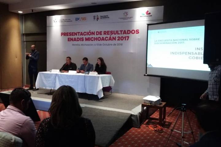 NOTICIAS 10/10/2018Michoacán, por debajo de la Media Nacional con una prevalencia de discriminación del 16.5% El estado de Michoacán registró menor prevalencia de discriminación en los últimos 12 meses, con un 16.5% en comparación con el 20.2% de la Media Nacional, así lo dio a conocer el Director General del Consejo Estatal para Prevenir y Eliminar la discriminación y la Violencia en Michoacán (COEPREDV), Alberto Hernández Ramírez al dar a conocer junto con la presidenta del Consejo Nacional para Prevenir Discriminación (CONAPRED), Alexandra ... Ver más...