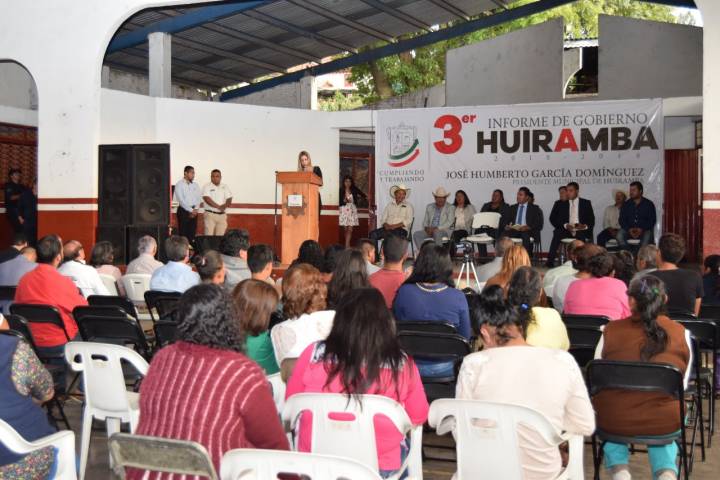 NOTICIAS 01/08/2018Con acciones coordinadas, Huiramba está en pleno crecimiento y desarrollo En representación del Gobernador del Estado, Silvano Aureoles Conejo, la directora general del Instituto de Vivienda del Estado de Michoacán (IVEM), MarÃa Yesmin Sánchez Huerta, asistió al Tercer Informe del presidente municipal de Huiramba, José Humberto GarcÃa DomÃnguez.