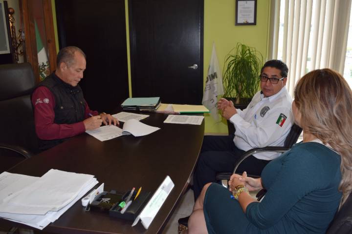 Durante la firma de convenio entre ambas instituciones, Donaldo Ortiz ColÃn, director gene... Ver más...