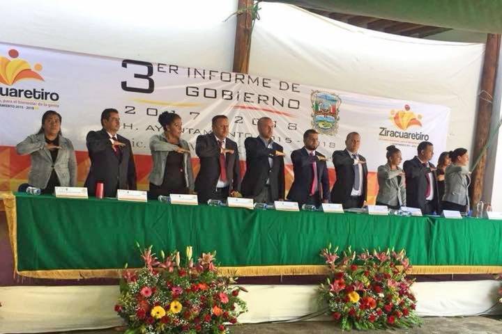 NOTICIAS 31/07/2018Avanzan obras y acciones de Gobierno en Ziracuaretiro: Garibay Con la representación personal del Gobernador, Silvano Aureoles Conejo y del secretario de Gobierno, Pascual Sigala Páez, el director del Trabajo y Previsión Social, David Garibay Tena, acudió al Tercer Informe del Gobierno Municipal de Ziracuaretiro.