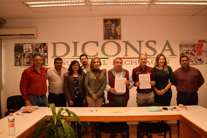 El director general del Icatmi, Donaldo Ortiz Colín y el gerente estatal de Diconsa en Michoacán, Francisco Espinosa Mújica, signaron por segundo año consecutivo el conveni... Ver más...