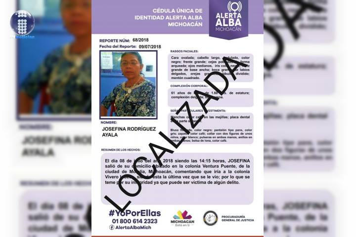 NOTICIAS 10/07/2018Localiza PGJE a mujer reportada como desaparecida en Morelia