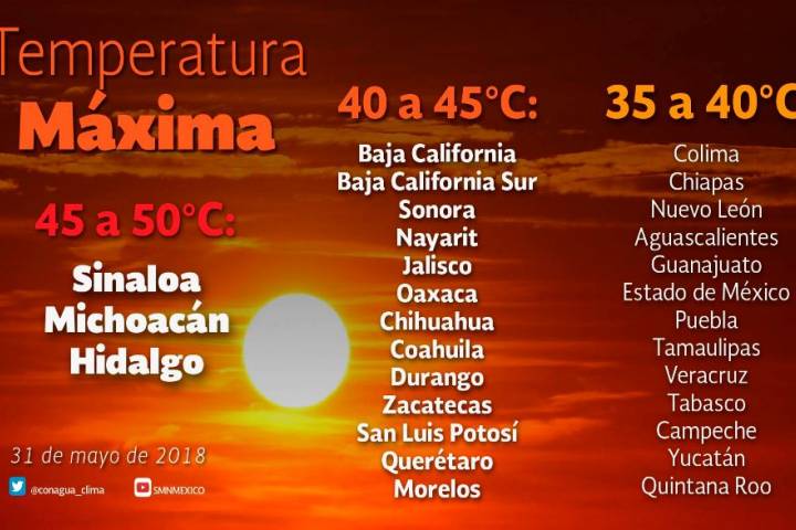 NOTICIAS 31/05/2018Alista Segob estrategia ante emergencia por onda de calorLa SecretarÃa de Gobierno, a través de la Coordinación Estatal de Protección Civil (PC) fue informada de la Declaratoria de Emergencia Extraordinaria por parte de la SecretarÃa de Gobernación, que aplica para 34 municipios debido a la onda de calor.