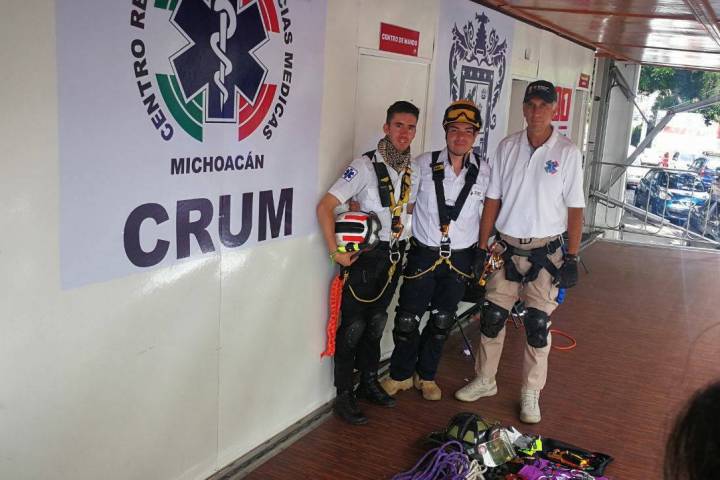 Integrantes del Centro Regulador de Urgencias Médicas (CRUM) Michoacán continúan otorgando ayuda en esta localidad de Jojutla, en el Estado de Morelos. Los mencionados rescatistas también son apoyados por doctores de la citada población y del Estado de México.