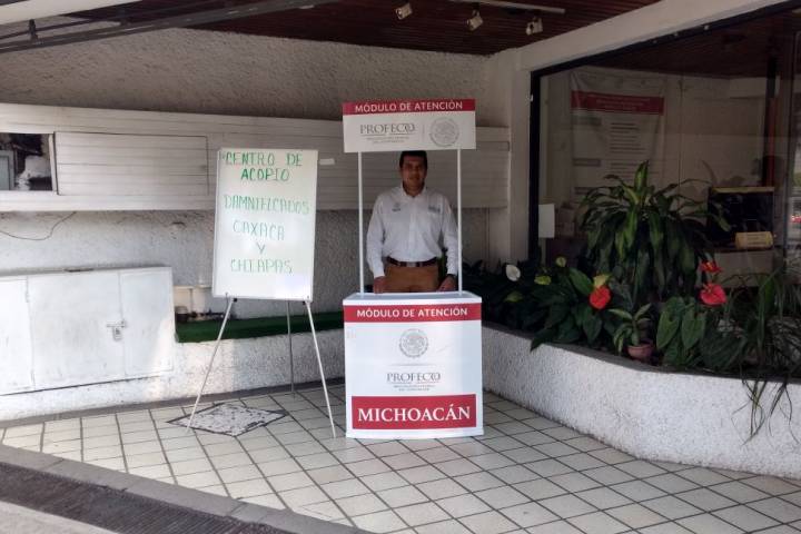 En solidaridad con los damnificados de los estados de Chiapas y Oaxaca, la Delegación Federal en Michoacán de la Profeco habilitó un centro de acopio para ayudar a las personas que resultaron damnificadas por el sismo de magnitud 8.2 de la semana pasada.