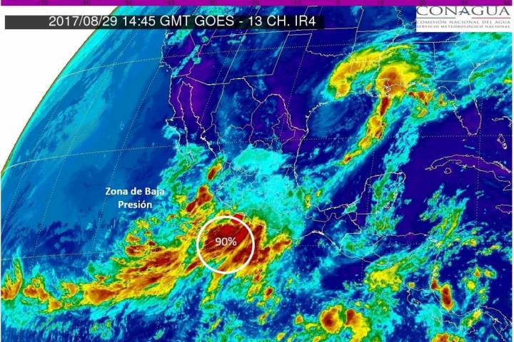 De acuerdo con el Sistema Meteorológico Nacional (SMN) se ha desarrollado la depresión tropical "catorce-e" que presenta desplazamiento al noroeste, asà como lluvia moderada y actividad eléctrica.