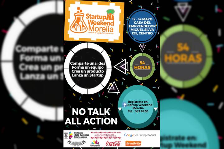 NOTICIAS 04/05/2017Invita Ijumich Startup Weekend Morelia de Google. El Insituto de la Juventud Michoacana (Ijumich), en colaboración con Google México convocan a los jóvenes michoacanos a participar en el Startup Weekend Morelia, que se realizará del próximo viernes 12 al domingo 14 de mayo en las instalaciones de la Casa del Emprendedor Poder Joven Michoacán.