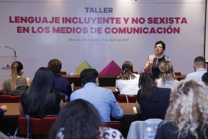 NOTICIAS 08/04/2017Imparten taller sobre lenguaje incluyente y no sexista en medios de comunicaciónComo parte de las actividades que lleva a cabo la Coordinación General de Comunicación Social del Gobierno del Estado, por instrucción del Gobernador Constitucional, Silvano Aureoles Conejo, para contribuir en la capacitación y actualización de las trabajadoras y trabajadores de los medios de comunicación, así como los enlaces de dicha área en la administración estatal, se llevó a cabo el taller sobre el Lenguaje Incluyente y No Sexista... Ver más...