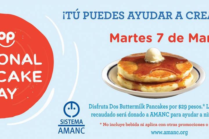 NOTICIAS 28/02/2017IHOP convoca a la sociedad a sumarse en la lucha contra el cáncer En su compromiso con la sociedad y en la búsqueda de lograr cada día más sonrisas en las familias, IHOP México, por cuarto año consecutivo presenta National Pancake Day, iniciativa que se llevará a cabo el próximo 7 de marzo y tiene como objetivo apoyar a los niños que padecen cáncer a través de la organización sin fines de lucro AMANC (Asociación Mexicana de Ayuda a Niños con Cáncer).