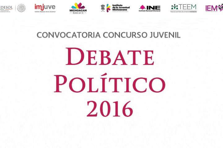 NOTICIAS 03/11/2016Recibirá Michoacán la etapa nacional del Concurso Juvenil Debate Político 2016 El Instituto Mexicano de la Juventud (Imjuve) realiza el Concurso Juvenil Debate Político, el cual tiene por objetivo impulsar la participación informada y la construcción de ciudadanía de las y los mexicanos de 12 a 29 años de edad.