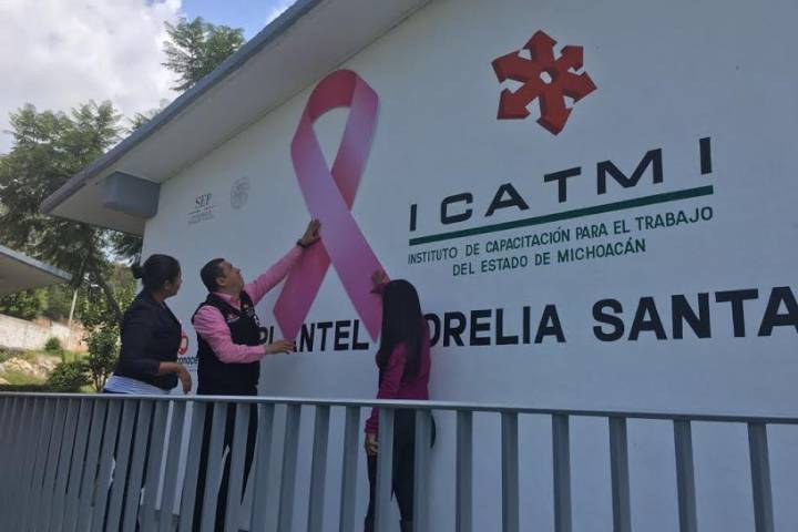 NOTICIAS 03/10/2016Inicia Icatmi campaña informativa y de concientización sobre cáncer de mama"Gracias al ICATMI puedo hablar con mucha gente. Si no estuviera dentro del plantel no sería lo mismo", así lo expresó Guadalupe Hurtado Avitia, Instructora del Instituto de Capacitación para el Trabajo del Estado de Michoacán (ICATMI) quien esta mañana compartió su testimonio con alumnas y trabajadoras del plantel Santa María para generar conciencia y prevención sobre el Cáncer de Mama.