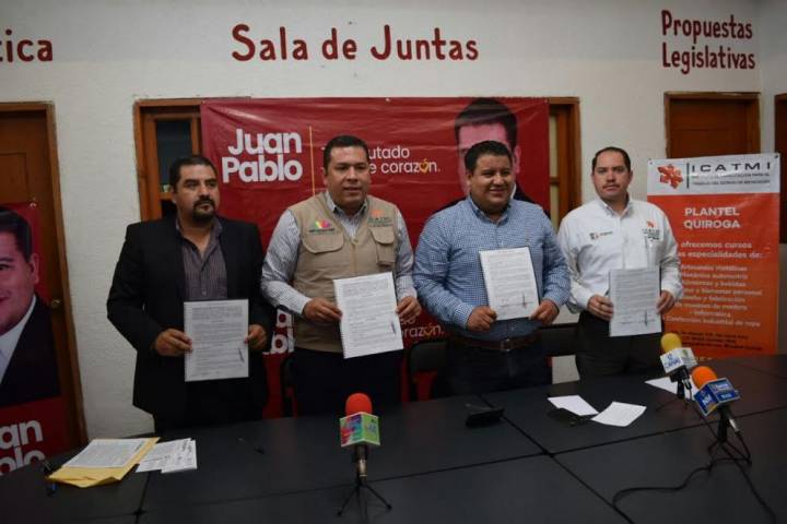 NOTICIAS 20/09/2016ICATMI amplia oferta educativa en Ciénega de ZacapuCon la finalidad de ampliar la cobertura de capacitación que oferta el ICATMI en la Ciénega de Zacapu y la Cañada de los Once Pueblos, donde existe demanda de capacitación laboral, esta mañana Juan Carlos Barragán Vélez, director general del Instituto de Capacitación para el Trabajo del Estado de Michoacán (ICATMI), y el diputado Juan Pablo Puebla, signaron un convenio de colaboración orientado hacia la empleabilidad de los habitantes d... Ver más...