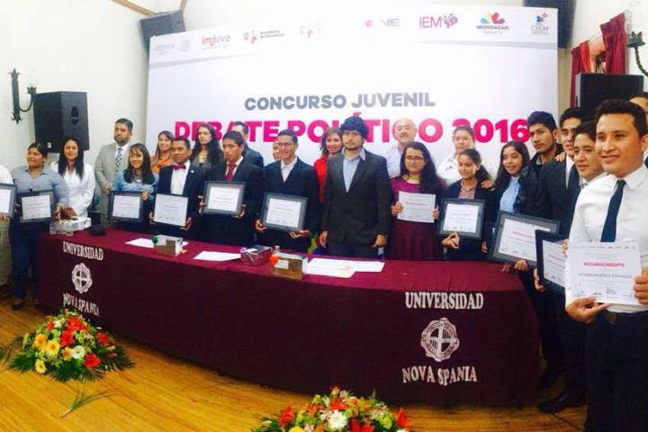NOTICIAS 12/09/2016Realizan Juvenil Debate Político 2016Como un ejercicio para promover la participación democrática de la juventud a través del diálogo e intercambio de ideas y propuestas, se realizó la final estatal del Concurso Juvenil "Debate Político 2016", en el Salón Morelos de la Universidad Nova Spania.