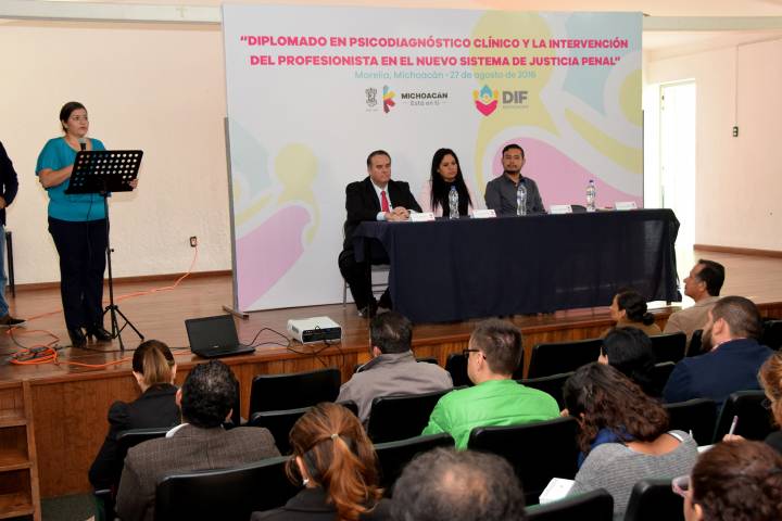 NOTICIAS 29/08/2016Se capacitan psicólogos en psicodiagnósticos clínicos y el NSJPCon la asistencia de psicólogos adscritos a los sistemas DIF municipales se realizó el inicio del Diplomado en Psicodiagnóstico Clínico y la Intervención del Profesionista en el Nuevo Sistema de Justicia Penal (NSJP), organizado por el Sistema para el Desarrollo Integral de la Familia (DIF) Michoacán.