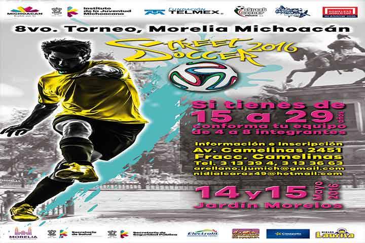 Con la finalidad de crear actividades que propicien la sana convivencia de los jóvenes, generar espacios para la realización de actividades saludables y fomentar la integración social, el Instituto de la Juventud Michoacana (IJUMICH) emitió la convocatoria para la 8° edición del Torneo Estatal de Street Soccer 2016, a través del cual será elegida la selección que representará al estado en el torneo nacional de fútbol callejero.