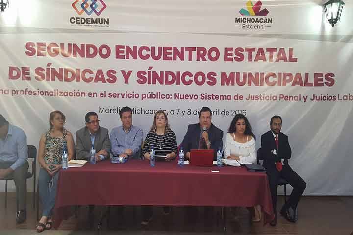 El Centro Estatal para el Desarrollo Municipal en conjunto con la Secretaría de Gobierno y la Procuraduría General de Justicia del Estado, ofrecieron un taller a las y los síndicos municipales de Michoacán sobre los procedimientos del Nuevo Sistema de Justicia Penal (NSJP).