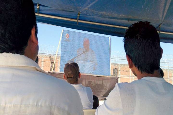 NOTICIAS 17/02/2016Difunde SSP mensaje del Papa a internos de penales de MichoacánEmociones encontradas vivieron los internos de los CERESOS y centros preventivos de Michoacán al escuchar el mensaje que el Papa Francisco dio a los internos del Centro de Readaptación Social No. 3 de Ciudad Juárez, mismo que fue proyectado en pantallas colocadas al interior de cada uno de los inmuebles.