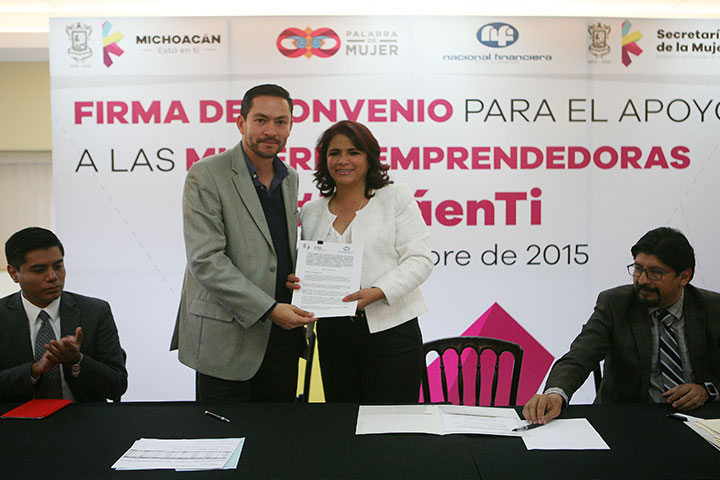 NOTICIAS 18/12/2015Firman convenio para el apoyo a mujeres emprendedorasLa Secretaría de la Mujer de Michoacán, firmó un convenio con Nacional Financiera (NAFIN) para ofrecer créditos con bajo interés y así mejorar las condiciones de vida de las mujeres y el desarrollo económico en el estado.