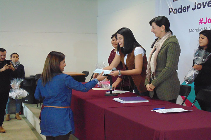 NOTICIAS 18/12/2015Entrega SEJOVEN 180 mil pesos a jóvenes participantes del Programa Poder JovenLa Secretaría de los Jóvenes hizo entrega de 15 becas a participantes del Programa Poder Joven Radio y TV 2015, mismo que es implementado en Michoacán en coordinación con el Instituto Mexicano de la Juventud (IMJUVE) y a través del cual 15 jóvenes producen y conducen emisiones radiofónicas en donde se abordan temáticas juveniles.