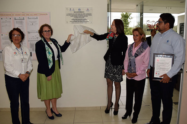 NOTICIAS 28/09/2015Casa cuna "Luz, Amor y Esperanza", segunda en el país con certificación ISO 9001:2008Con la finalidad de lograr una atención de calidad e integral para los menores, la Casa Cuna "Luz, Amor y Esperanza", perteneciente al Sistema para el Desarrollo Integral de la Familia (DIF) Michoacán, que preside Catherine Ettinger de Jara, logró obtener su certificación al cumplir con los criterios de la Norma ISO 9001:2008.