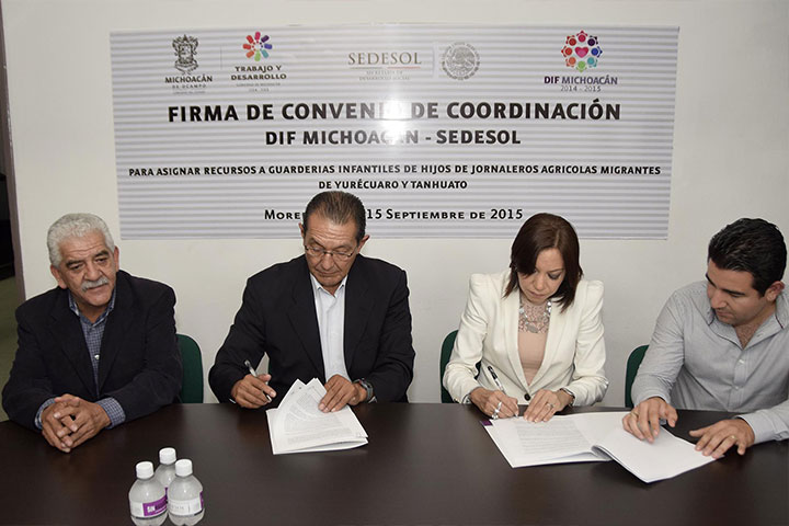 El Sistema para el Desarrollo Integral de la Familia (DIF) Michoacán, presidido por Catherine Ettinger de Jara, firmó un acuerdo de coordinación con la Secretaría de Desarrollo Social (Sedesol), a través de la delegación en el estado, para la entrega de los apoyos directos a la población jornalera, específicamente los denominados "Apoyos Alimenticios a los niñas y niños", dentro del marco del Programa de Atención a Jornaleros Agríco... Ver más...