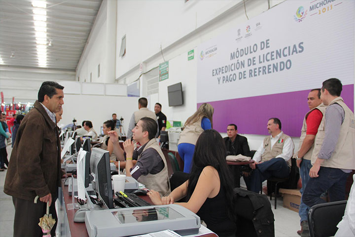 Dentro del pabellón comercial de la Expo Feria Michoacán 2015, se ubica un módulo de expedición de licencias de conducir y pagos de refrendo vehicular, en el cual los contribuyentes pueden aprovechar su visita al recinto ferial y realizar sus trámites de manera ágil y sencilla.