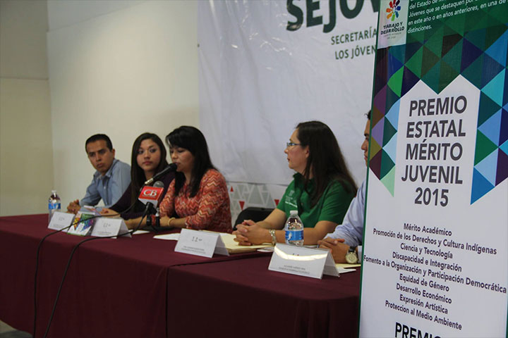 NOTICIAS 10/06/2015Presentan convocatoria del Premio al Mérito Juvenil 2015"El Premio Estatal al Mérito Juvenil es la máxima distinción que el Gobierno del Estado de Michoacán ofrece a jóvenes" destacó la secretaria del ramo en Michoacán, Ana Brasilia Espino Sandoval, durante la rueda de prensa para dar a conocer los pormenores de la convocatoria 2015 del mismo.