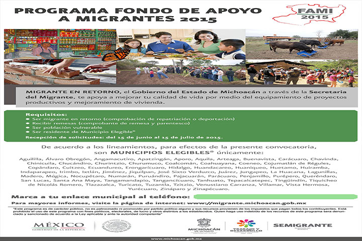 La Secretaría del Migrante (Semigrante) impartió un curso de capacitación para los 65 Enlaces de los Centros Municipales de Atención al Migrante participantes en el Fondo de Apoyo al Migrante (FAMI) 2015, que este año destinó para Michoacán 47 millones 405 mil 925 pesos.
