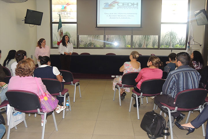 NOTICIAS 14/04/2015Ofrece CEDH capacitación sobre hostigamiento y acoso sexualLa Comisión Estatal de los Derechos Humanos (CEDH) impartió una capacitación dirigida a servidores públicos e integrantes de asociaciones civiles, con el tema de Hostigamiento y Acoso Sexual en el Ámbito Laboral, con la finalidad de contribuir a generar un entorno sano en esos espacios.