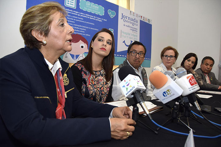 En rueda de prensa, autoridades del Sistema para el Desarrollo Integral de la Familia (DIF) Michoacán, que encabeza Catherine Rose Ettinger de Jara, en coordinación con Grupo Mercy, la Secretaría de Gobernación, el Club Rotario Camelinas, los Servicios de Salud en el estado y el Sistema DIF Municipal, anunciaron la Jornada Quirúrgica de Malformaciones Congénitas gratuitas.