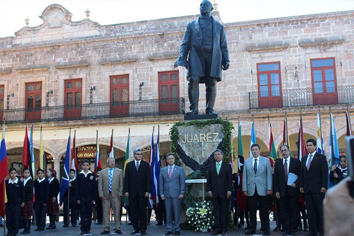 Con motivo del 209 aniversario del natalicio de don Benito Juárez García, se llevó cabo ceremonia conmemorativa en el Centro Histórico de esta ciudad capital, a la que acudió con la representación del gobernador Salvador Jara Guerrero, el secretario de Gobierno, Jaime Esparza Cortina.