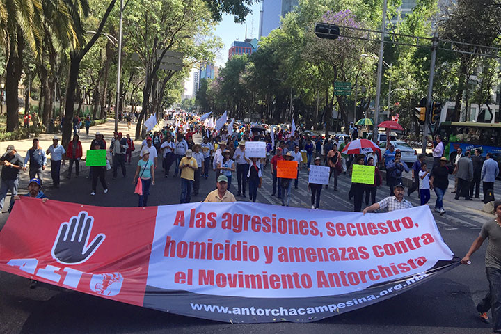 Los antorchistas salieron esta mañana del Monumento a la Madre, en Villalongín, por Reforma, hacia la glorieta del Ángel de la Independencia y de ahí volvieron en marcha por Reforma hacia Bucare... Ver más...