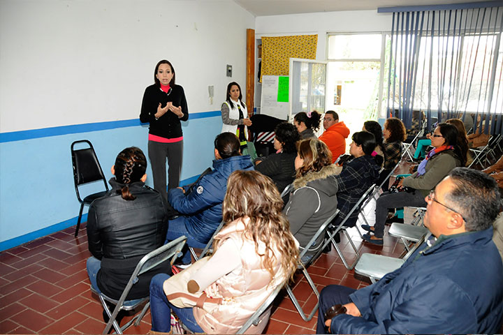 Mariana Sosa Olmeda, directora general del Sistema para el Desarrollo Integral de la Familia (DIF) estatal, mismo que preside Catherine R. Ettinger, efectuó reunión de trabajo con padres de familia de los Centros de Atención para el Desarrollo Infantil (CADI´s) "Juana Pavón" y "Alfredo Zalce".