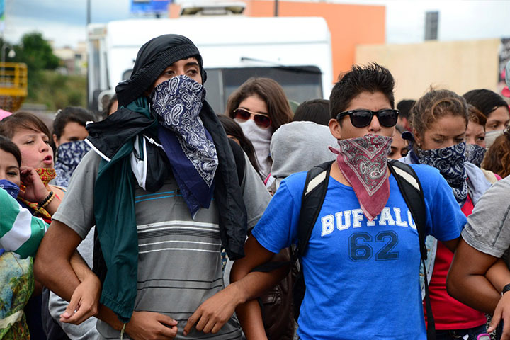 NOTICIAS 14/10/2014Normalistas marchan, cierran vialidad y denuncian agresión de policíasMientras un grupo de normalistas normalistas inició la movilización rumbo a Palacio de Gobierno, otro más se mantiene en las inmediaciones del Obelisco al General Lázaro Cárdenas donde han cerrado la circulación vehicular de la vialidad que proviene de la calzada La Huerta.
