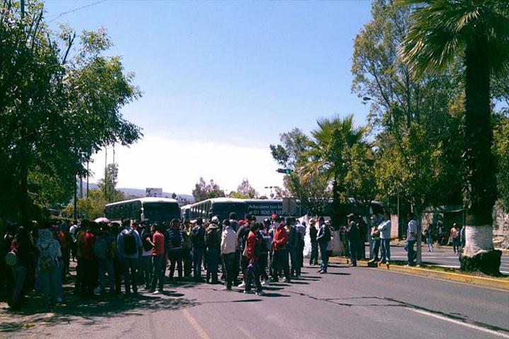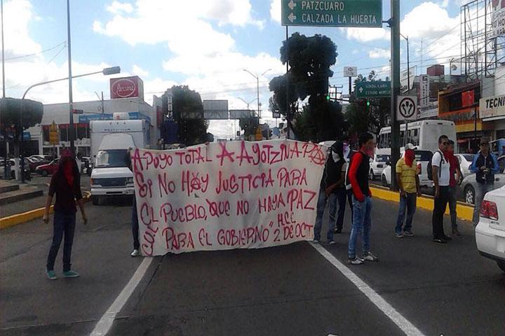 Normalistas que se encuentran en las inmediaciones del Obelisco al General Lázaro Cárdenas han secuestrados unidades del Ayuntamiento de Morelia y comerciales.