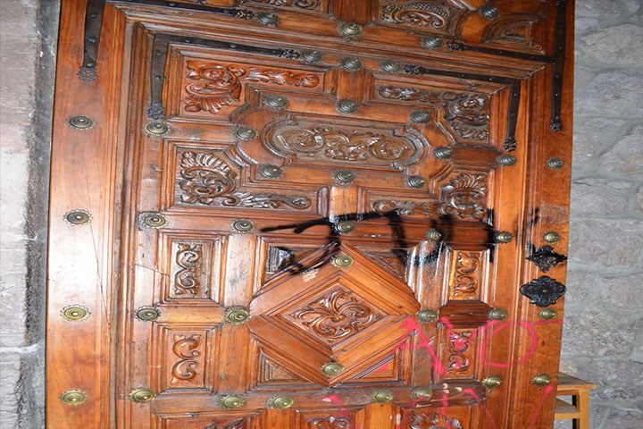 La noche de este martes, un numeroso grupo de estudiantes normalistas pintarrajeó la fachada del Palacio de Gobierno, ubicado en esta capital, al igual que lo hizo con su antiquísima puerta, cuya reciente remodelación costó más de un millón de pesos, de acuerdo con fuentes allegadas al gobierno estatal.