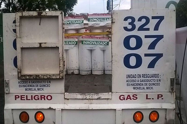 La Delegación de la Procuraduría Federal del Consumidor en Michoacán (Profeco) inmovilizó el lote total de cilindros del camión repartidor de la empresa Gas Express Nieto, por encontrarse abajo de la tolerancia permitida en peso.