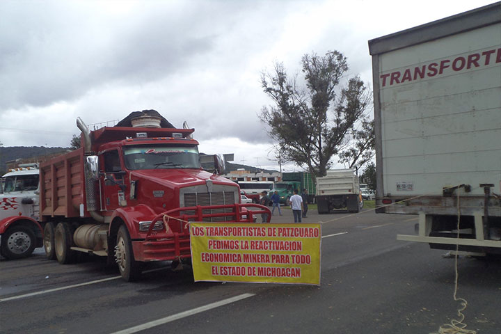 Integrantes de la Unión de Ingenieros Mineros del Pacífico, UNIMPA, bloquearon diversos puntos de la autopista Siglo 21 que comunica a la capital michoacana con el puerto de Lázaro Cárdenas, con la finalidad de exigir la reactivación de la industria Minera de Michoacán.