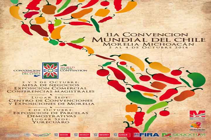 Tras las gestiones del Gobierno del Estado y representantes del Sistema Producto Chile, Michoacán consiguió ser sede de la XI Convención Mundial del Chile 2014, que tendrá lugar los dÃas 2, 3 y 4 de octubre del año en curso y al que se estima asistirán alrededor de mil personas, con lo cual se confirma la capacidad que tiene la entidad de albergar eventos de carácter internacional, asà como la confianza de los empresarios en acercarse ... Ver más...